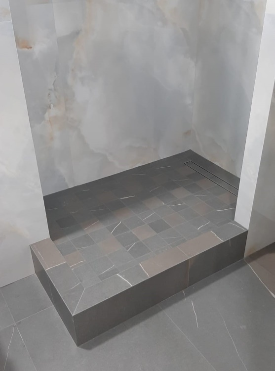 В качестве альтернативы сливу в полу возможно использование готовых душевых поддонов, что существенно облегчает процесс монтажа. Некоторые модели отличаются минимальной высотой или допускают установку на одном уровне с полом. Рекомендуется отказаться от использования душевых кабин и поддонов, изготовленных из пластика. В качестве материалов для отделки лучше всего подойдут натуральный камень, керамическая плитка, мрамор или мозаика. Поддоны из фарфора также могут стать удачным решением.